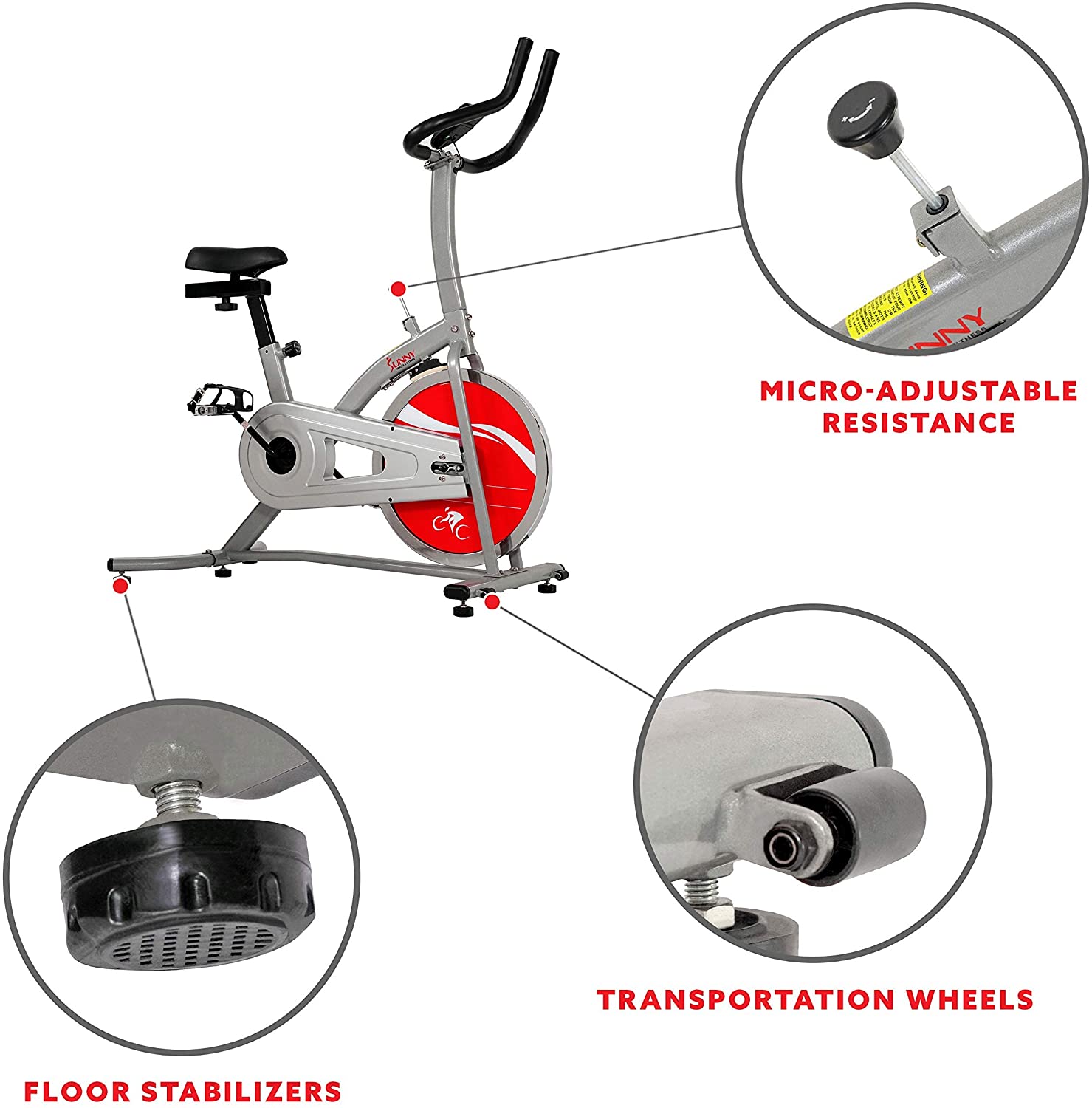 Sunny Health & Fitness Indoor Cycle Exercise Bike with Heavy Chrome 49 LB / 22 LB Flywheel